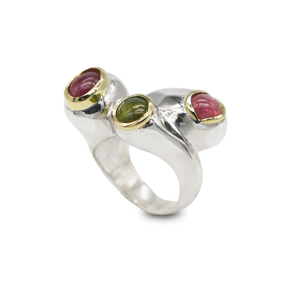 • Engastado turmalinas verde y rosa, que aportan brillo y carácter únicos