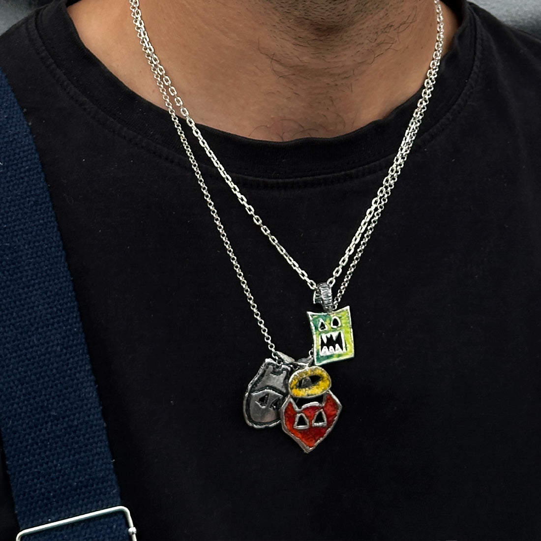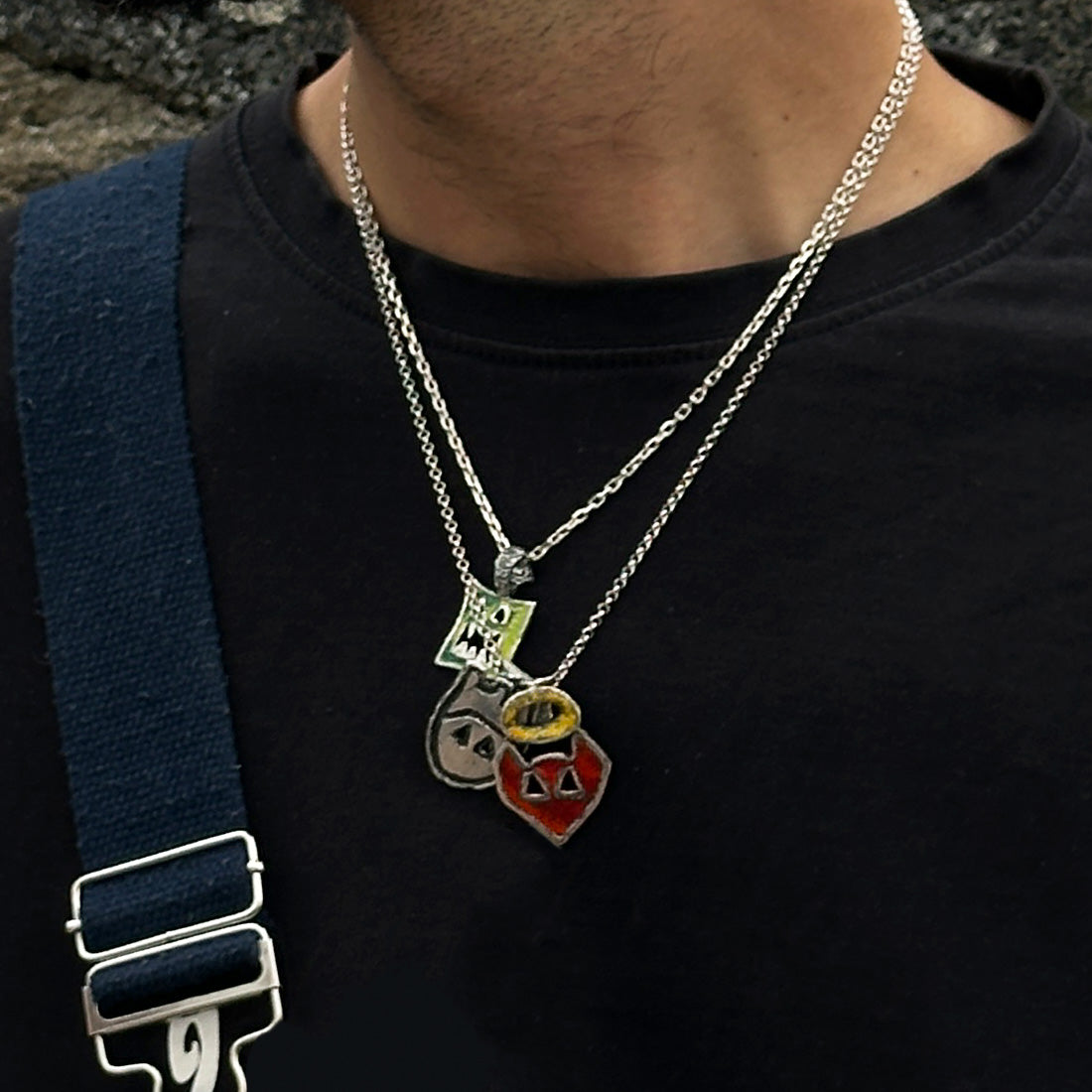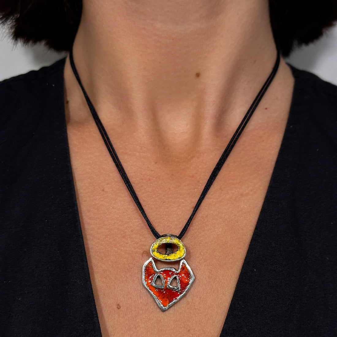 • Colgante hecho a mano con plata925 reciclada con esmalte a fuego rojo y amarillo