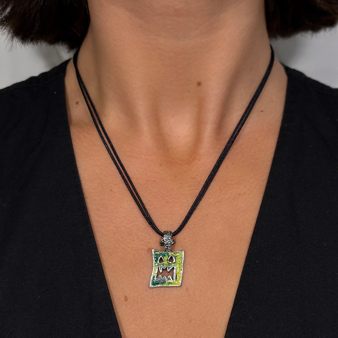 • Colgante hecho a mano con plata925 reciclada con esmalte a fuego verde