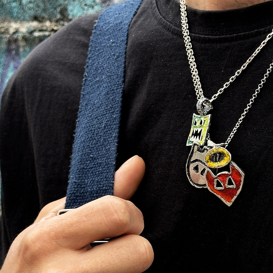 • Colgante hecho a mano con plata925 reciclada, con textura y esmalte a fuego aportando color