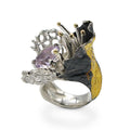 Anillo único de plata925 reciclada y oro 24k elaborado a mano con una Amatista. Un diseño que nace de las profundidades de la mente y se revela como una joya viva e irrepetible