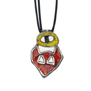 • Colgante hecho a mano con plata925 reciclada con esmalte a fuego rojo y amarillo