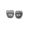 Pendientes hechos a mano de plata925 reciclada envejecida para resaltar los trazos de la silueta insignia de Shem.