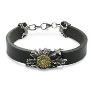 •	Handmade bracelet with recycled 925 silver and leather, featuring a finish that combines polished and oxidized areas